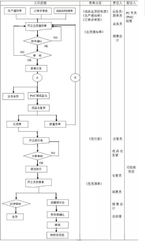 4、内贸/外贸业务员将经总经理审批后的《出货通知单》复印两份,一份交PMC经理,一份交PMC部成品仓主管,原始单自存。