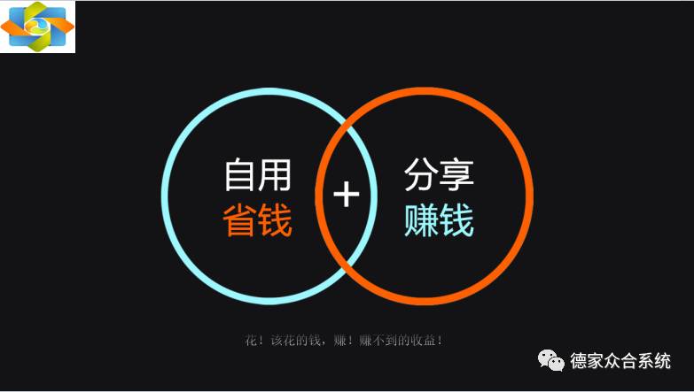 2、消费商主导的是“花本来就该花的钱,赚本来赚不到的钱”,带来的是一种全新的利润分配规则。