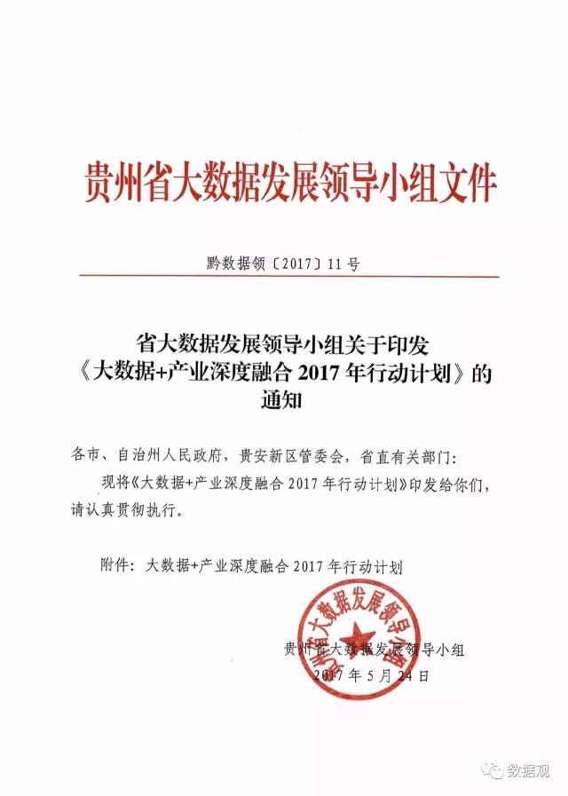 为深入实施大数据战略行动,加快推进国家大数据综合试验区建设,推动大数据与三次产业深度融合发展,按照省政府工作要求,决定开展“大数据+产业深度融合2017年行动计划”(以下简称行动计划)。