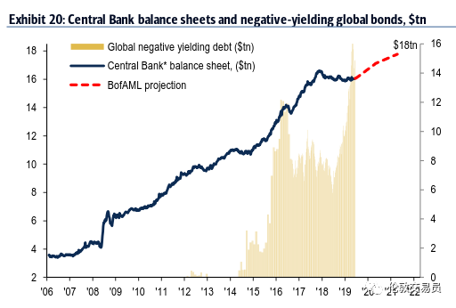 随着全球货币宽松的持续进行,到2021年,全球央行的资产负债表将突破18兆亿美元,占全球GDP的20%。