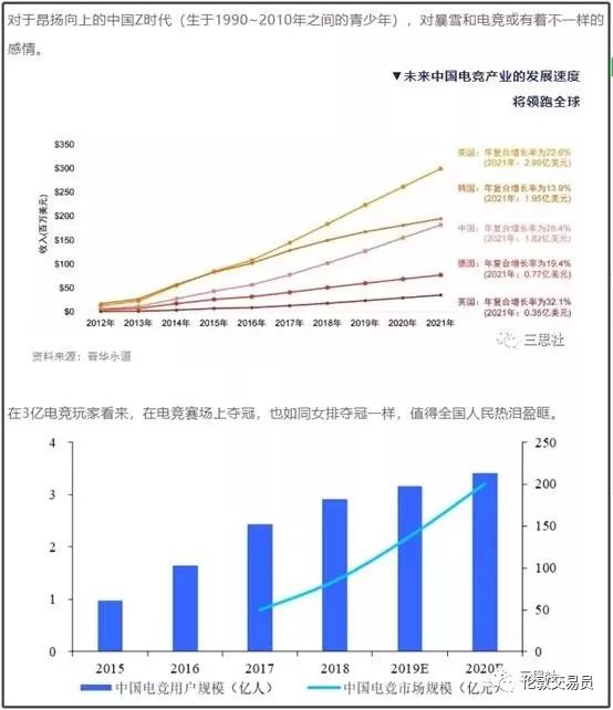 新一代人口的局部崛起,也催生了新一代人的娱乐竞技。随着电子竞技产业的高速发展(下图),'玩游戏'将不仅是中国年轻人的主流休闲方式,也或将成为2024年巴黎奥运会的比赛项目。