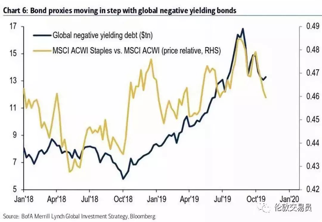 但负利率也并非没有机会,类债型股票或将受益(如下图黄线)。