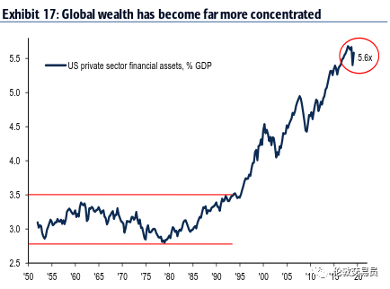 图:美国私人部门持有的金融资产占美国GDP的比例%