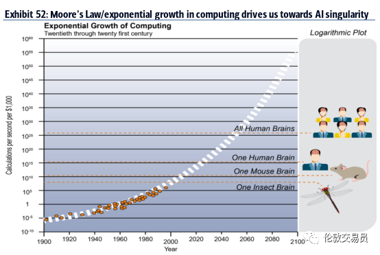 根据摩尔定律,在2030年之前,AI就将变得与人类一样智能(下图)。