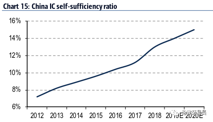 图:中国集成电路产业的自给率虽有提高,但仍很低