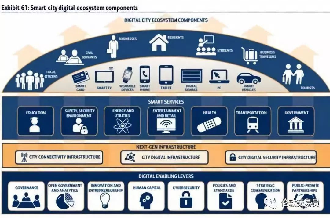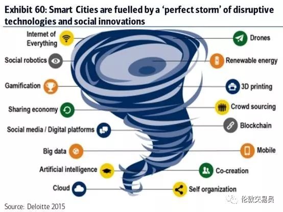 在未来智能城市的建设中,每一个智能产业将不再是'闭门造车',而是得与其他智能产业形成联动(下图)。用德勤报告的话来说:一起卷出一道'龙卷风'。