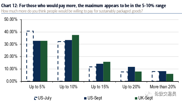 根据调查,大部分消费者愿意为可持续包装的商品支付不超过10%的溢价。