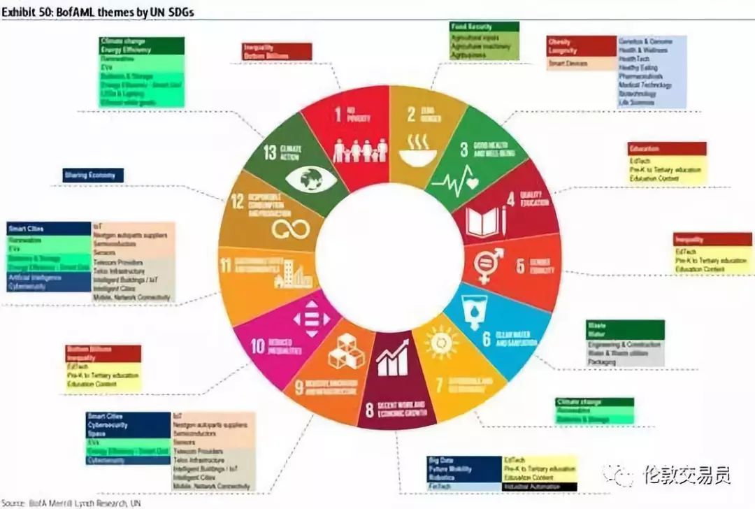 美林根据联合国的指引,梳理了一系列行业机会(见下面两图)。