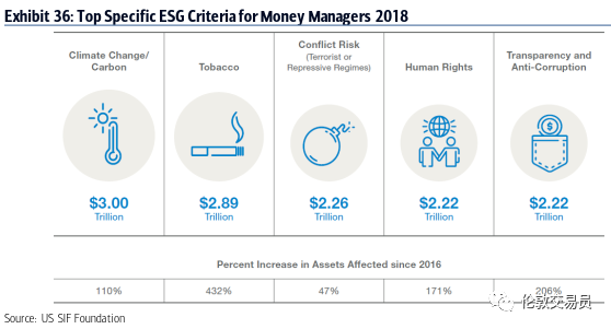 图:2018年最具代表性的五个ESG因素(气候变化、吸烟、反恐与冲突、人权、透明与反腐)