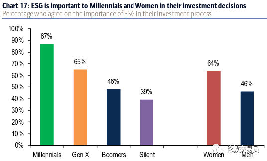 但是,ESG因子的潜在影响目前仍被大大低估了,尤其是新一代年轻人与女性决策者的影响正在越来越大。