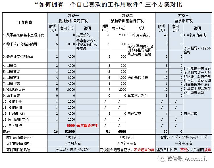 二、 如何才能拥有一个自已喜欢的工作用软件呢?作为中层干部,经常的考虑一般是二选一:一是请软件公司开发,二是自已学会然后自已开发。