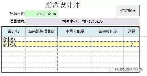 对设计师字段内容的处理:已经指派设计师的,显示设计师的姓名;未指派的,显示“指派…”,点击可打开另一“设计师指派表”。