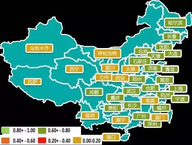 全国中心城市综合网络安全指数地域分布