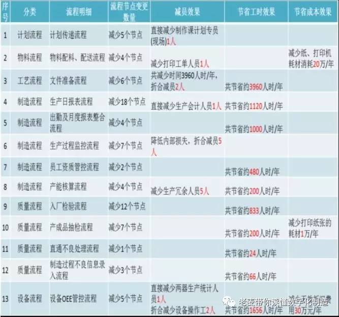 1) MES系统内传递生产计划、工单,实时反馈生产进度,并传递计划调整信息,取消人员传递信息,人工耗时0h。