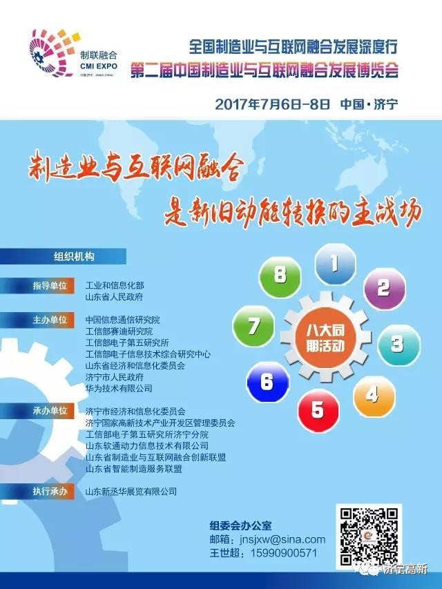为学习贯彻国务院《关于深化制造业与互联网融合发展的指导意见》,协同推进“中国制造2025”和“互联网+”行动计划,加速推进新旧动能转换,提升全省制造业与互联网融合发展水平,定于7月6-8日在济宁市举办全国制造业与互联网融合发展深度行(山东站)暨第二届中国制造业与互联网融合发展高峰论坛(以下简称高峰论坛)。