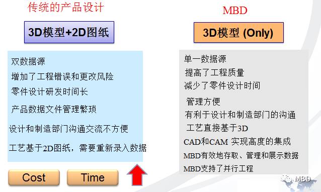 MBD研发制造模式对比传统二维工程图模式特点如下图