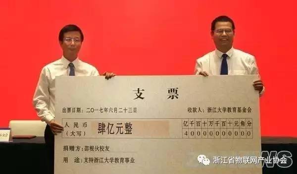 6月23日,大北农集团董事长邵根伙再次回到母校浙江大学(浙江省物联网产业协会常务副理事长),向浙江大学教育基金会捐赠4亿元,并与浙大签署战略合作框架协议。
