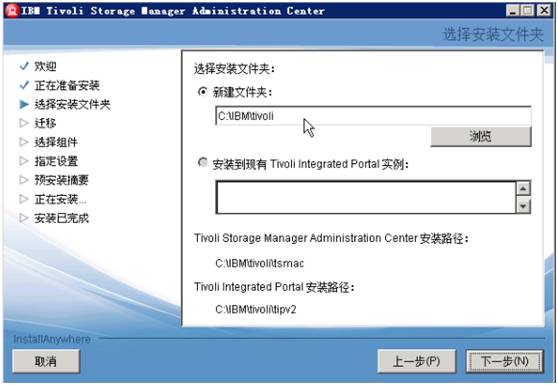 选择软件安装管理器(不等于 TSM服务器安装目录)的目录: