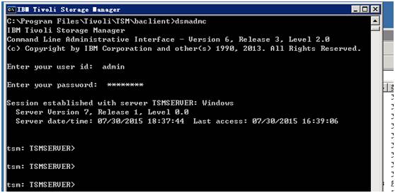 开始–所有程序– Tivoli Storage Mnager - 管理命令行