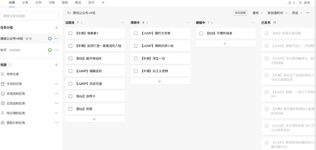 某种程度上,这个工作表正是远程协作办公最重要的核心,因为远程协作对进度掌控的精细度要求非常高,原本几天一验收的工作,必须达到一天一验收,甚至半天一验收才能保证效率。而这样的验收频率,就决定在工作任务的分割上更加精细、准确,整个工作的时间安排需要管理者拥有对工作内容有充分的了解才能做到。Teambition自带很多这样的模板,这种模块化管理是提升效率的利器,即使在办公室场合也能用上,但在远程协同中效果会变得更突出。第三是进度的可视化。仅仅是验收还不够,远程协作的另一个要点,就是进度的可视化,也就是整个流程的透明。当你永远能刷新网页看到上一个环节现在的工作进度的时候,你,还有管理者,才能适当的调整自己的工作节奏。机关单位总说要经常和领导汇报工作,其实是一个道理,领导对现在工作的进度不了解,就没法及时调整。如果每一个环节都在列表上,现在进行到哪一步都一目了然,整体的效率当然就飞起来了。这种展示个人工作状态的工作台很多软件都有,比如说Teambition(这个家伙搞综合,什么都会一点),微信企业版,钉钉。第四,统一标准!不管是执着的用微信拉会议,还是尝试拥抱Teambition的任务看板,最重要的事永远是制定一个统一的标准。因为远程协作办公大部分员工处于分散状态,各自对工作的理解都有差别,又不可能在即时通讯软件里仔细沟通,事前的约定就尤为重要。标准制定好了,一切按部就班的往下跑就行。标准没搞好,下面的人做完了事连找谁对接都不知道,不凉凉才有鬼。