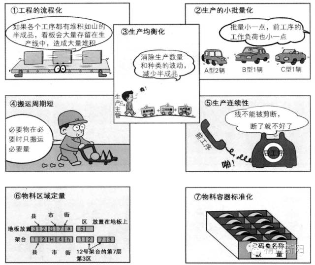 前面我们了解了看板的基本思考方法和功能,那我们该如何导入看板呢?为了顺畅灵活的运用看板,需要充分认识导入的前提条件,并做好充分的准备。拉动式生产的主要7个前提条件是指:工程的流程化、生产的小批量化、生产均衡化、搬运周期短、生产连续性、物料区域定量、物料容器标准化。