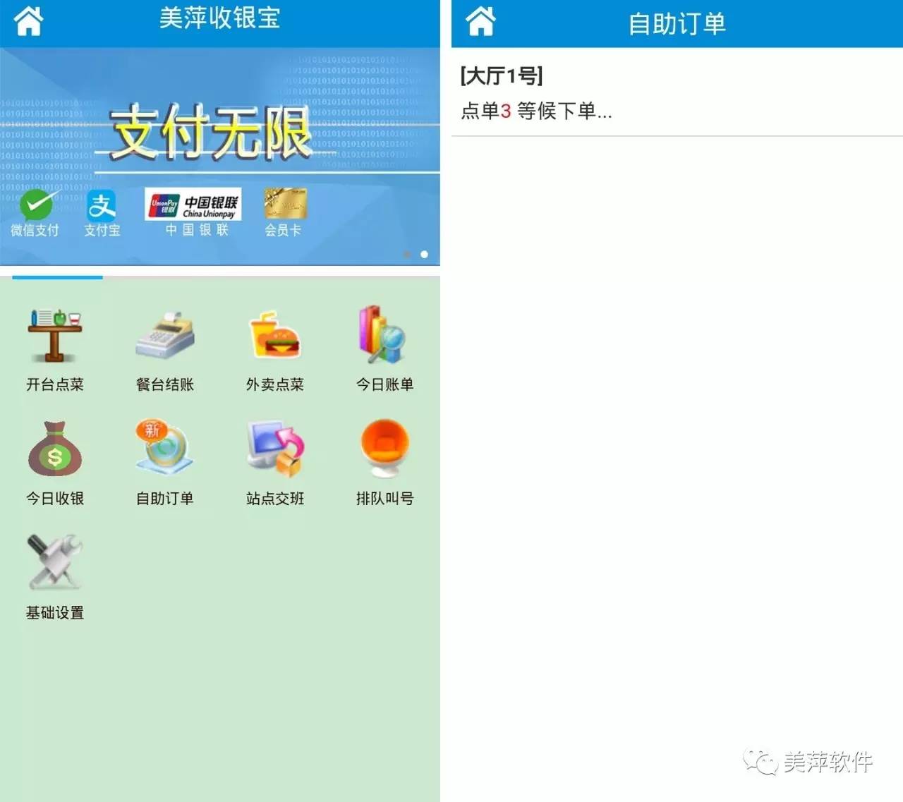 美萍餐饮ERP收银宝手机自助下单功能详解