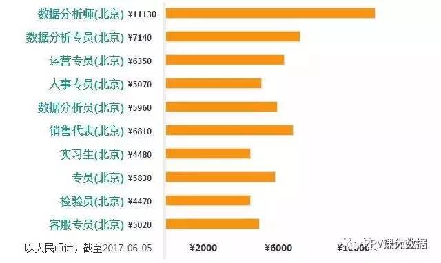 北京数据分析平均工资:¥ 10630/月,较 2016 年,增长 9.4%。