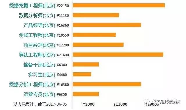 北京数据挖掘平均工资:¥21740/月,取自 3449 份样本,较 2016 年,增长 20.3%;