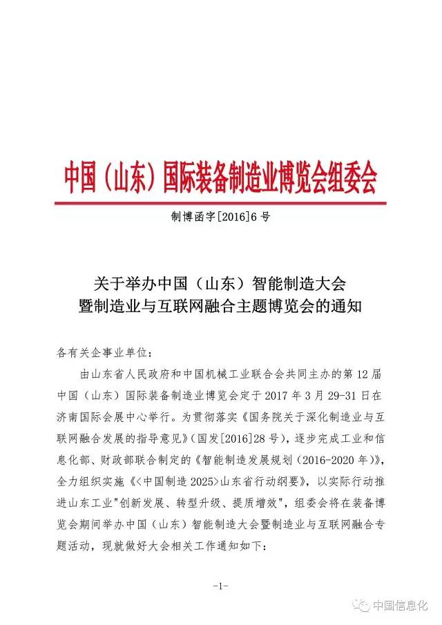 2016年回顾:山东省信息化与工业化融合主要工作情况