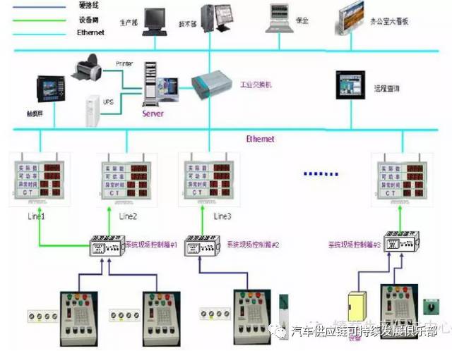 该系统能够收集生产线上有关设备、生产以及管理等多方面信息,在对这些信息进行处理后,系统控制分布在整个车间的指示灯、声音报警系统,同时将信息推送到现场的LED/LCD显示设备或者相关人员的手机等。