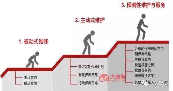 过渡二:从主动式维护向预测性维护的过渡:随着设备的网络化、智能化发展,企业越来越关心是否能利用设备自身的运转情况分析来制定更优的保养计划,在保证设备持续健康的情况下,降低设备运维成本;同时对于已发生的故障,能够快速产生解决方案。