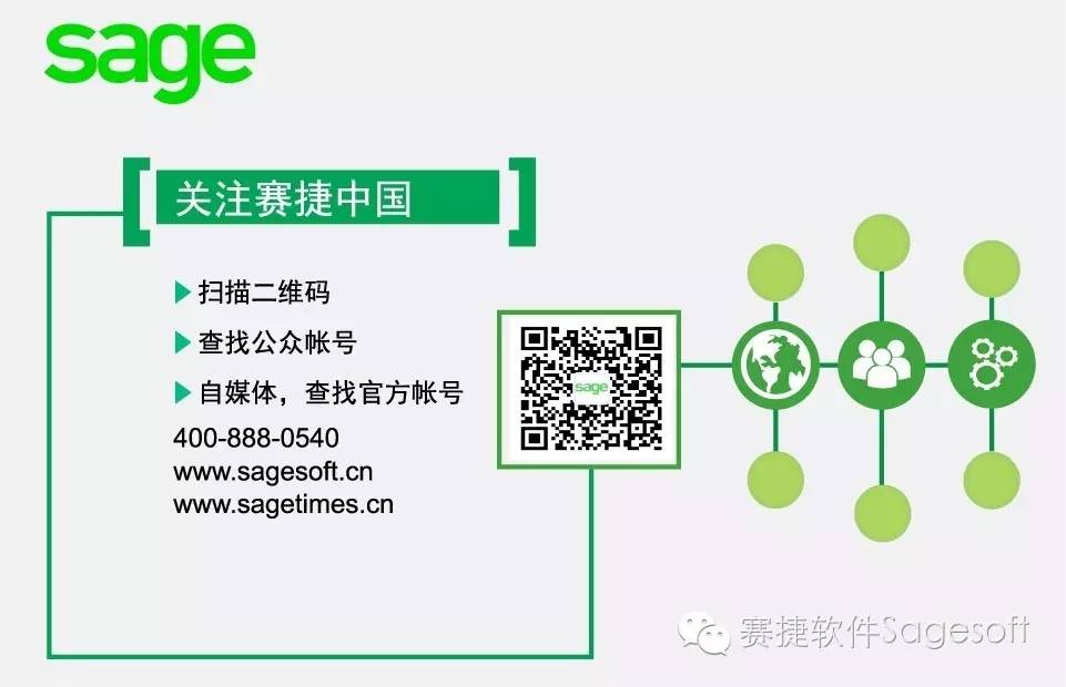 如果您也想制定出自己的ERP项目目标,或者说您才刚开始实施ERP,不知道从哪里下手,那么请您马上联系Sage的专家!我们始终致力于帮助客户选择、设计与实施ERP系统,来支持他们的业务流程!我们能在ERP项目中全程为您提供帮助!如需更多信息,欢迎垂询免费热线:400-888-0540或发送邮件至info@sagesoft.cn联系我们,也可以登陆www.sagesoft.cn或关注微信号:赛捷软件Sagesoft。