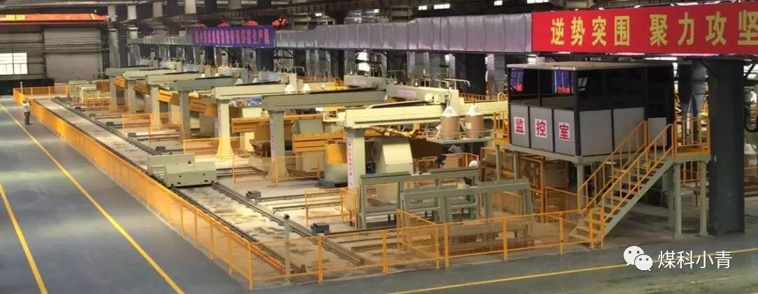 天地科技与哈尔滨焊接研究所合作,建设了国内首个中部槽自动化/智能化预热焊接生产线,如图3所示。项目采用在线预热、智能自动组装定位、智能焊接和检测等技术,实现中部槽中板和底板的自动化焊接功能;生产线全长98米、宽10.5米,包括组装、激光焊接、中板焊接、底板点焊和焊接、掏焊等12个工位、7台焊接机器人,工位之间物料传输采用RGV小车,实现了中部槽组装焊接智能化、制造流程自动化、现场检测实时化和车间生产管理信息化,大幅提升了传统煤机制造业的生产技术水平。
