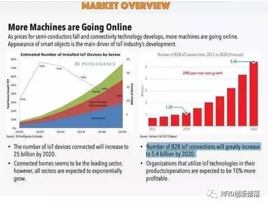 根据Verizon提供的数据,到2020年,B2B物联网连接的数量将增加到54亿,从2014年的预测基准年起实现28%的复合年增长率。大企业将成为物联网普及的先驱。