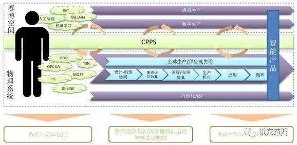 他指出,工业4.0提出了CPPS系统,在赛博空间里进行虚拟的生产,并将其下载到现实的物理系统执行,通过尽量少的测试消耗,直接生产出高品质的产品,这里就包含了传感器技术、云平台、大数据、数字化制造、自动化技术的融合,那么这就包含了以下知识的掌握:
