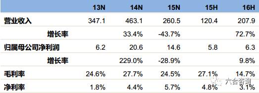 毛利率:2013~2015年、2016年上半年分别为24.6%、27.7%、24.5%、14.7%。