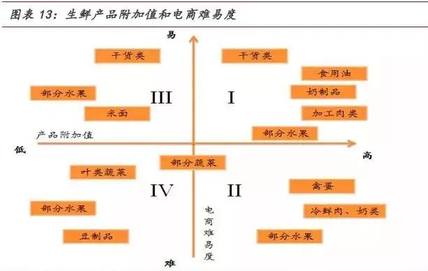 考虑产品附加值和电商运营难易度,干货、奶制品、食用油、加工肉类及部分水果具有高附加值&电商运营便捷的特点。