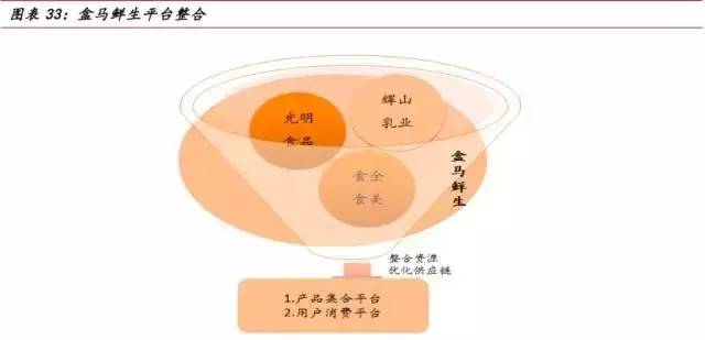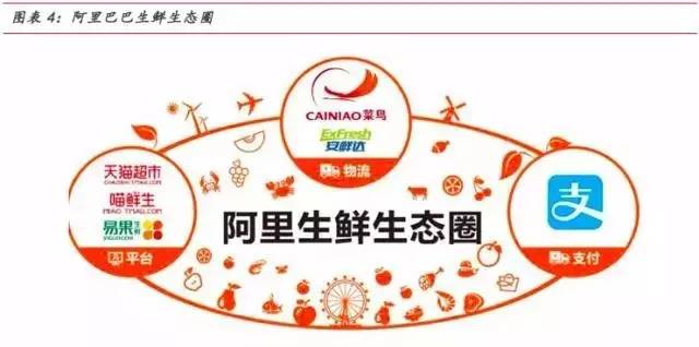 如果新模式验证成功,对于阿里集团的线下布局将是重要的经验和参照,为阿里电商进一步深入线下零售提供助力。对阿里来说,生鲜是潜在巨大产能的流量品类,入驻生鲜电商是未来新零售布局的关键一环。2016年阿里重资投资易果生鲜,入股浙江连锁超市三江购物,整合天猫超市生鲜构架,增强生鲜电商物流配送实力,无不在为其生鲜生态圈建设铺路。盒马鲜生背靠阿里,一方面可以获得菜鸟网络以及易果生鲜旗下安鲜达多年的冷链物流配送经验;另一方面“支付宝”提供支付方式及用户流量支持,使其得以专注于改善产品和服务的质量。