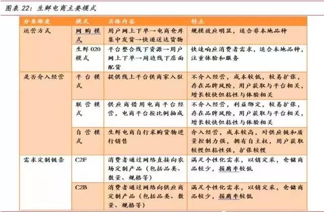 按照不同分类维度,目前国内生鲜电商主要可分为以下几种模式: