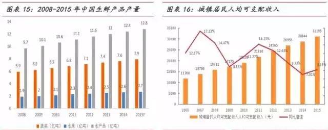 ②人民生活日益富裕,对于生鲜产品的消费支出不断提高。此外在严峻的食品安全环境下,消费者越来越关注食品的品质与安全,对于优质生鲜产品的需求日益旺盛。供需两端保证了生鲜行业的市场空间。
