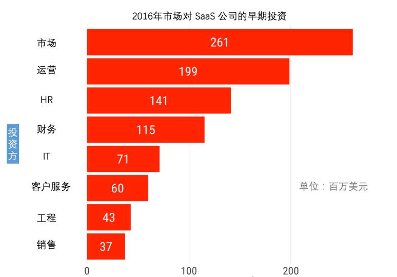 根据红点投资的统计数据,在早期投资市场,SaaS 各领域的投资情况为: