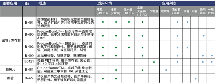 注:请在购买前测试以确定该产品适用于您的实际用途。请联系贝迪销售代表获取更多实验室标签解决方案。