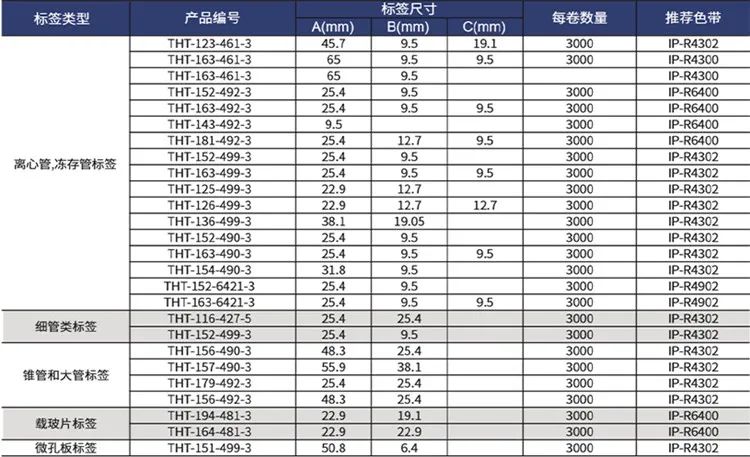 离心管,冻存管标签、锥管和大管标签、细管类标签、载玻片标签 、微孔板标签。