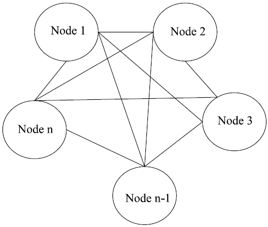 3 基于区块链的威胁情报共享及评级技术特点基于区块链的威胁情报共享及评级方法和系统,是利用区块链技术构建威胁情报信息以及威胁情报源的可信度、贡献率的区块链,进而实现威胁情报的共享和评级,及时、高效地获取威胁情报进行防护响应,具体包括一种基于区块链的威胁情报共享及评级系统和一种基于区块链的威胁情报共享及评级方法。其技术特点包括4个方面。(1)利用区块链的开放、共识、自治和去中心、去信任的特点,创新地提出通过区块链技术构建威胁情报信息的区块,包括IP地址信息、域名信息、URL信息、安全事件信息、漏洞信息等,并实现基于区块链的威胁情报共享方法和系统。(2)利用区块链的不可篡改、可追溯的特点,创新地提出基于区块链的威胁情报共享方法,从而实现威胁情报提供者的可管、可控、可溯源。(3)创新地提出基于时间序列和质量序列相融合的共识算法设置,极大地降低了情报信息的重复率。(4)创新地构建威胁情报源可信度、威胁情报源贡献率的区块,提出基于区块链的威胁情报评级方法和系统,及时有效地获取或者分析出最新、最有价值的威胁情报信息,从而及时进行防护及应急响应。4 基于区块链的威胁情报共享及评级方法和系统4.1 基于区块链的威胁情报共享及评级方法和系统所涉及的各个节点构成在介绍基于区块链的威胁情报共享及评级方法和系统之前,先说明基于区块链的威胁情报共享及评级方法和系统中,威胁情报共享及评级所涉及的各个节点之间的逻辑示意图(见图1),各个节点之间在逻辑层面上形成了点对点的通信。