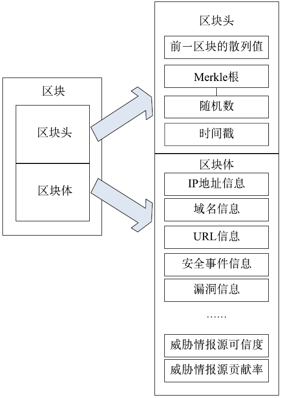 (1. 中国科学院大学网络空间安全学院,北京 100049;2. 中国科学院信息工程研究所,北京 100093;3. 中国移动通信研究院安全技术研究所,北京 100053;4. 中国移动通信集团网络事业部,北京 100033;5. 360集团,北京 100015)* 基金项目:国家自然科学基金项目(No.61702508, No.61572481, No.61602470)资助摘要:随着计算机和网络技术的快速发展,网络安全事件频发,安全漏洞不断,威胁情报的作用和价值越来越大。基于区块链的开放、共识、自治和去中心、去信任、不可篡改、可追溯等特点,提出了通过区块链技术构建威胁情报信息的区块,包括IP地址信息、域名信息、URL信息、安全事件信息、漏洞信息、威胁情报源可信度、威胁情报源贡献率等;并设计了基于区块链的威胁情报共享和评级系统,给出了相应的基于区块链的威胁情报共享方法和评级方法,实现及时有效获取及分析最新、最有价值的威胁情报信息,从而及时进行防护及应急响应,促进整个威胁情报生态的闭环持续有效开展。关键词:威胁情报;区块链;共享;评级1 引言随着计算机和网络技术的快速发展,各种网络安全事件频繁发生,新漏洞层出不穷,催生出大量新的安全风险,对网络安全和业务安全造成严重威胁。传统的网络安全模式,安全防护各自为营,各项信息相对孤立,网络安全防护已落后于攻击技术发展。安全子系统相互独立,容易造成孤岛效应。各个系统缺乏协同,难以协同、高效的工作。威胁情报信息相互独立,威胁情报平台难以共享。而且现有的共享机制中的威胁情报信息存在被篡改的可能性,同时针对情报提供者所提供的威胁情报信息质量的高低没有对应的反馈机制。对于威胁情报提供者可信与否也缺乏判定及对应的激励机制。因此,威胁情报信息的共享亟需解决,同时也亟需针对威胁情报共享中威胁情报源的情报质量、可信度、贡献率等进行评级,以利于及时高效地获取威胁情报信息,进行防护及应急响应,促进整个威胁情报生态的闭环持续、有效开展。本文基于区块链技术,对区块链共享及评级的相关技术进行研究,提出了一种基于区块链的威胁情报共享及评级的方法和系统。2 区块链概述区块链没有统一标准的概念定义,不同组织机构有不同的定义。但是区块链技术是多种关键技术的集成创新,是各界对区块链的共识。具体而言,区块链是链表式账本技术、密码算法、共识机制、智能合约以及分布式存储等多种关键技术的集成创新。根据应用场景进行划分,区块链可分为公有链、联盟链、私有链3种。公有链系统具有开放、共识、自治,去中心、去信任,交易透明、双方匿名、不可篡改、可追溯等特点。针对区块链系统的不同类别划分,各自的特点又稍有区别,主要体现在是否开放、是否去信任这两点。例如,联盟链是半开放、去信任的,专有链是不开放、相互信任的。公有链、联盟链和私有链应用系统的特征对比参见表1。表1 公有链、联盟链和私有链应用系统的特征对比