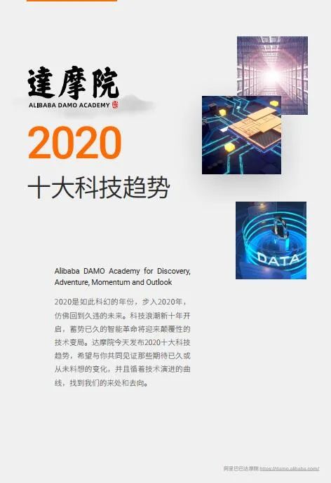 2020是如此科幻的年份,步入2020年,仿佛回到久违的未来。科技浪潮新十年开启,蓄势已久的智能革命将迎来颠覆性的技术变局。达摩院今天发布2020十大科技趋势,希望与你共同见证那些期待已久或从未料想的变化,并且循着技术演进的曲线 ,找到我们的来处和去向。