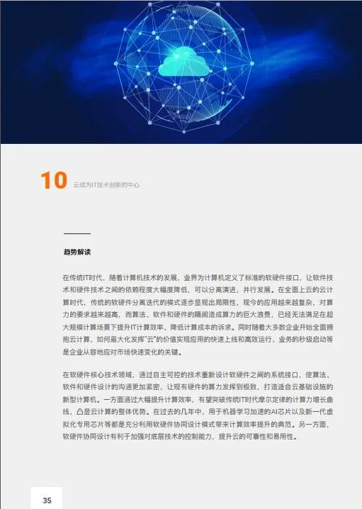 【趋势概要】随着云技术的深入发展,云已经远远超过IT基础设施的范畴,渐渐演变成所有IT技术创新的中心。云已经贯穿新型芯片、新型数据库、自驱动自适应的网络、大数据、AI、物联网、区块链、量子计算整个IT技术链路,同时又衍生了无服务器计算、云原生软件架构、软硬一体化设计、智能自动化运维等全新的技术模式,云正在重新定义IT的一切。广义的云,正在源源不断地将新的IT技术变成触手可及的服务,成为整个数字经济的基础设施。