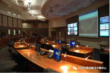 内华达州紧急响应中心,同样需要共用大屏,每个管控人员需要的信息量不是太大,但人和人之间的协调更重要,所以更像一个视频会议室