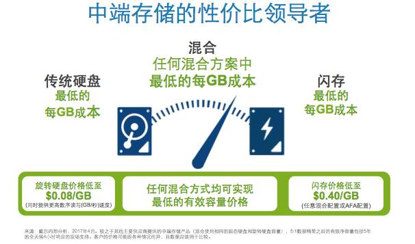 针对企业级用户在存储上的强一致性与安全性考虑,中端存储具备了更好的性价比,同时具备高端存储的解决方案组合。