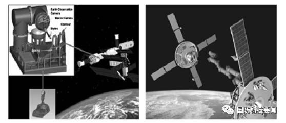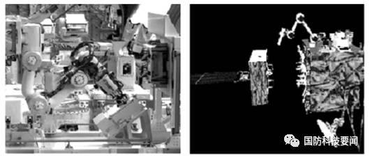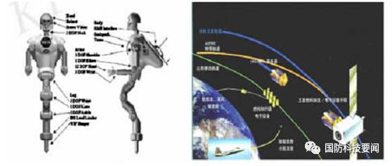 Robonaut是NASA开发的空间类人机器人,如图(5)所示。它是一个多自由度灵巧机器人,主要是作为助手与航天员一起工作,并执行日常维修任务。“轨道快车”计划是在1999年公布的,如图(6)所示。主要用于开发研究未来空间在轨补给和修复、重构等技术,试验修复卫星,进行各类仪器的太空试验,并利用在轨飞行演示与验证。